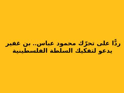 بن غفير يدعو إلى تفكيك السلطة الفلسطينية ردًا على تحركات عباس